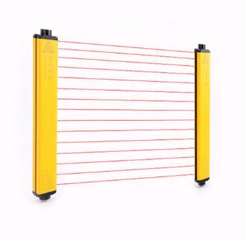 光電保護器的工作原理是紅外輻射源和紅外接收器一對一地工作,構(gòu)成紅外光的維持平面。一旦產(chǎn)生障礙物,觸發(fā)動作就很短,相應(yīng)的信號可以及時傳送,在控制點立即停止對機器的控制,從而保證操作人員的安全。